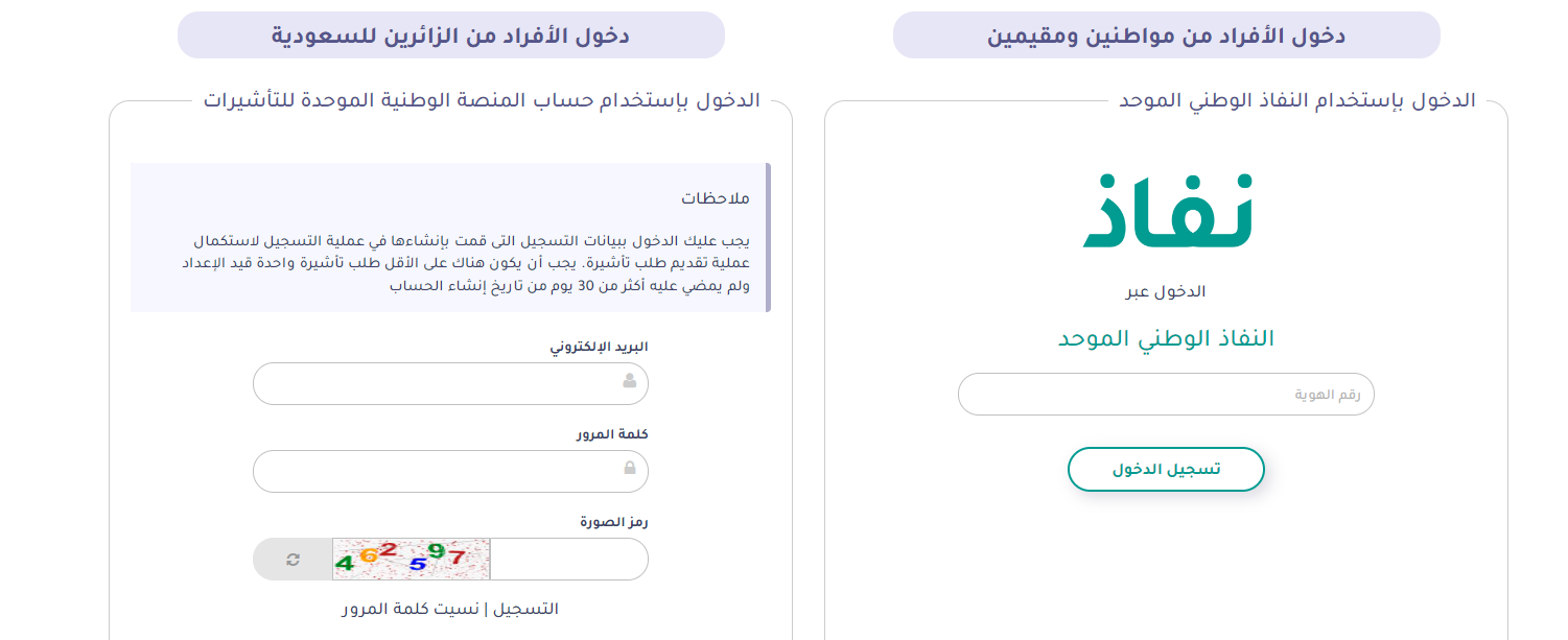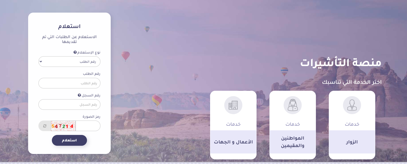 - يتم الانتقال إلى منصة التأشيرات من هنا.